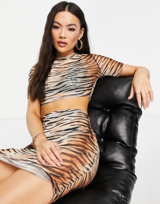 Public Desire mesh crop top set in tiger print