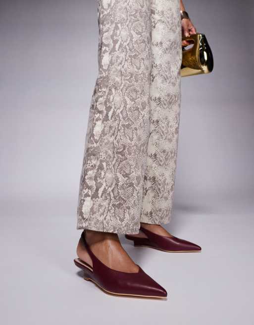 Public Desire Paphos sling back low wedge kitten heel shoes in burgundy