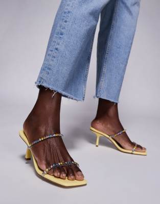 Public Desire Suvi embellished strap kitten heel sandals in yellow