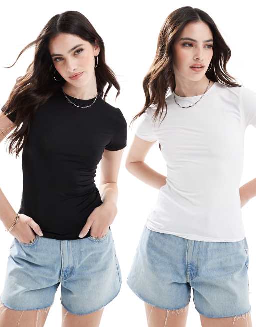 Pull&Bear 2-pack polyamide baby tees in black & white