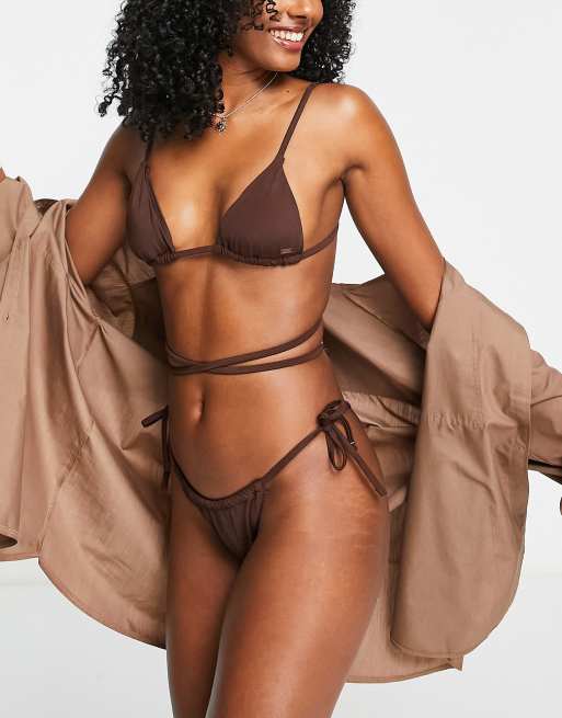 Pull&Bear cross front bikini top in brown - part of a set