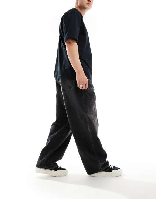 Pull&Bear distressed super baggy jeans in black