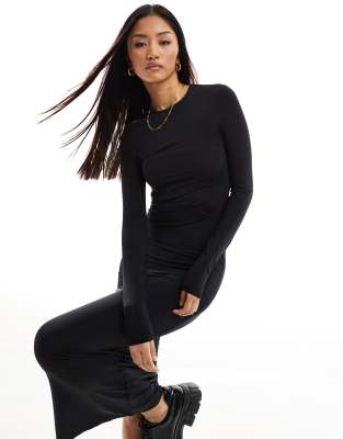 Pull&Bear long sleeve soft shaping maxi dress in black