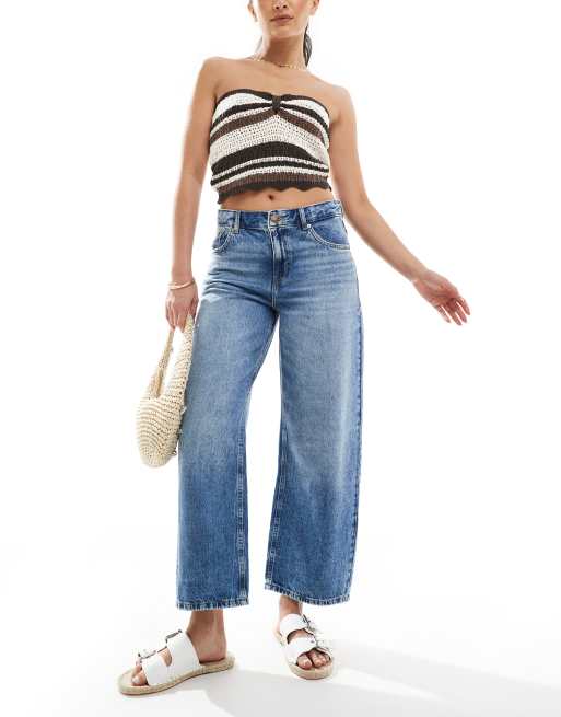 Pull&Bear mid rise cropped jeans in mid blue