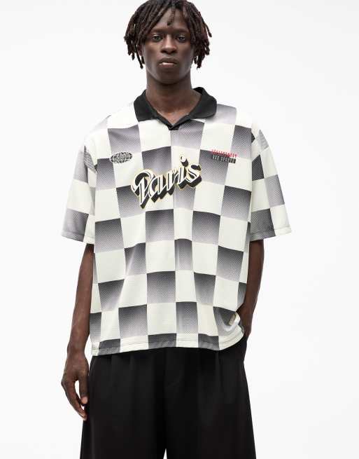 Pull&Bear paris checkered retro sports t-shirt in ecru