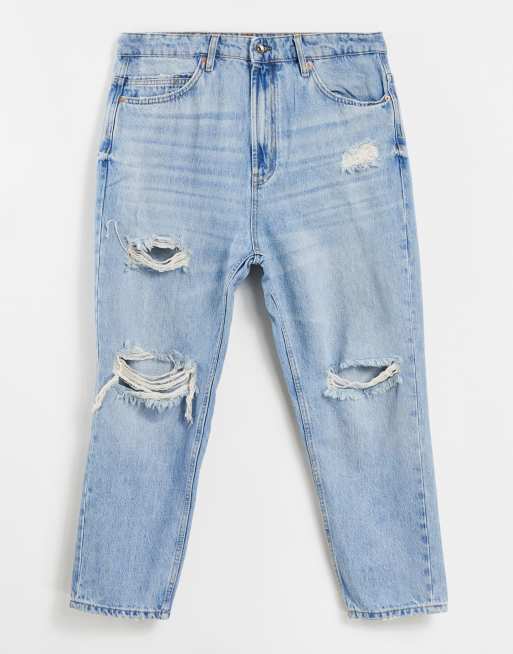 Pull&Bear relaxed ripped jeans in blue