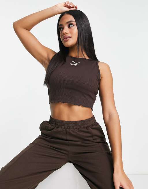 Puma Classics cozy club crop top in dark chocolate - Exclusive at ASOS