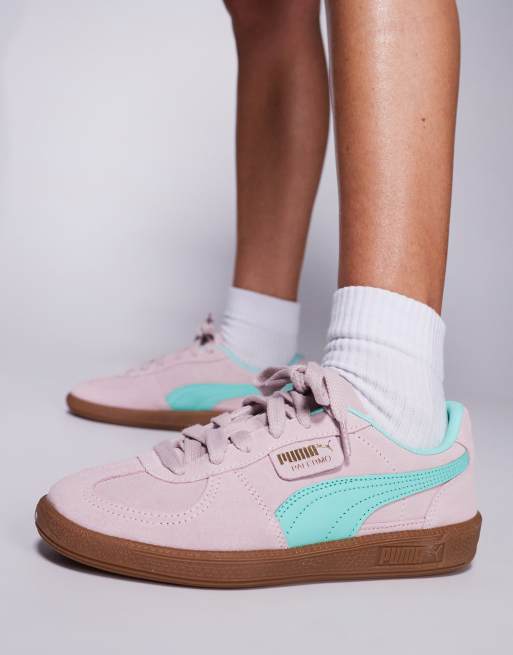 PUMA Palermo sneakers with gum soles in pink and blue