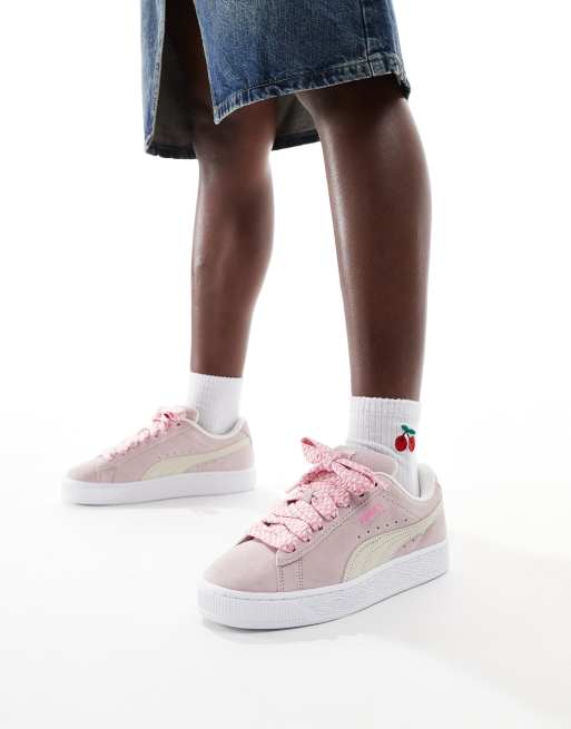 PUMA Suede XL sneakers with lace detail in pink and cream
