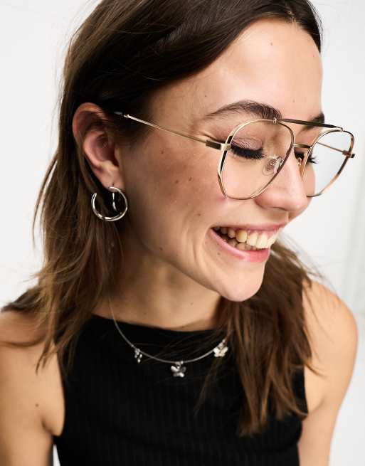Quay locals only round aviator blue light glasses in black and gold