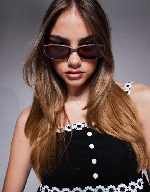 Quay vibe check rectangle sunglasses in pink with brown lenses