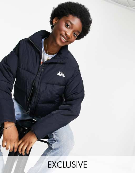 Quiksilver Cropped puffer jacket in black Exclusive at ASOS
