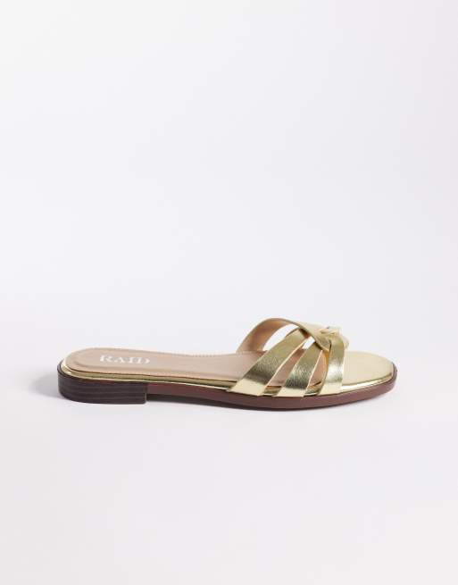 RAID Wide Fit Toffee flat sandal slides in gold