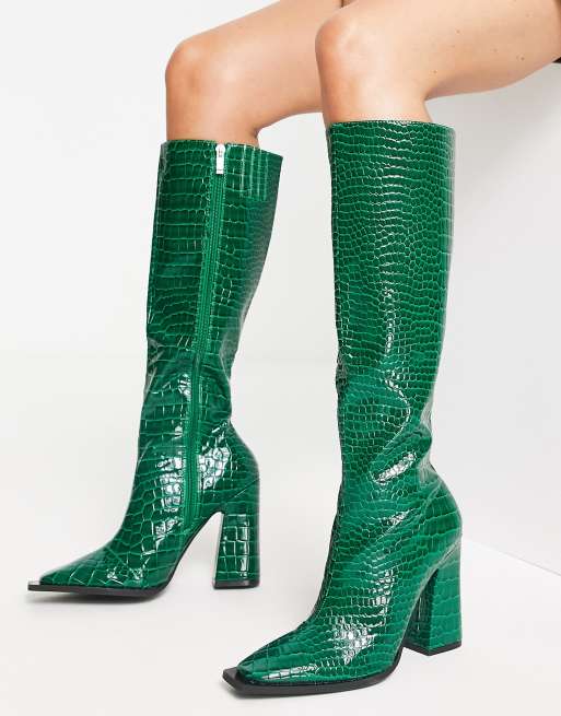 Raid Sphere heeled knee boots in green croc