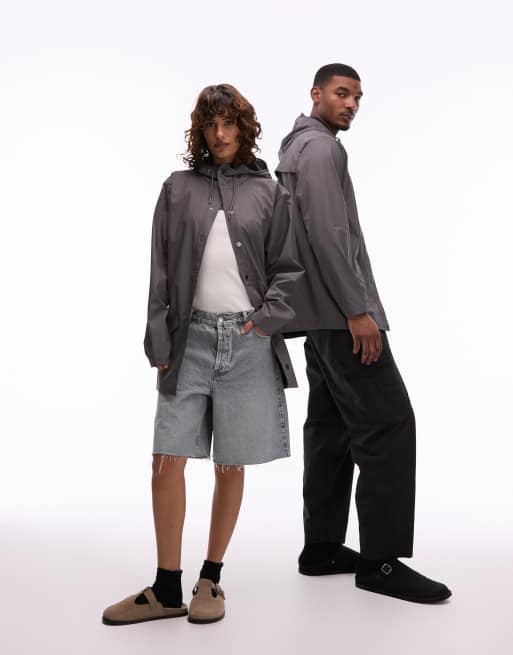 Rains 12010 unisex waterproof long hooded jacket in gray