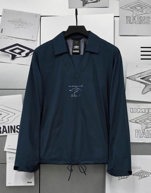 Rains X Umbro Drill waterproof v-neck collared top in blue