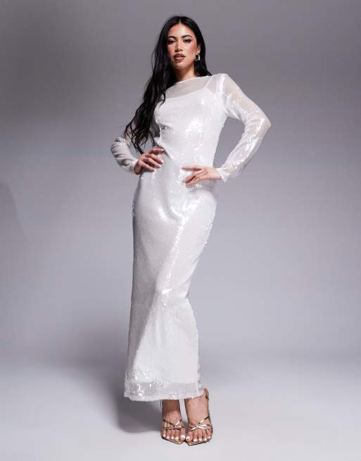 Rare London sequin long sleeve maxi dress in white
