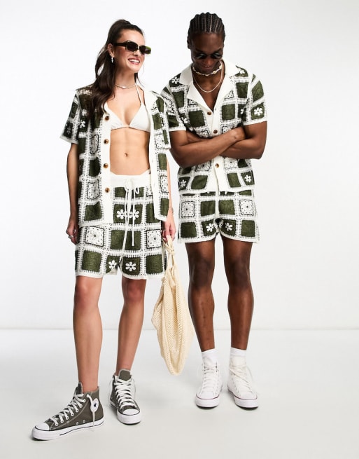 Reclaimed Vintage unisex knitted patchwork revere set in khaki