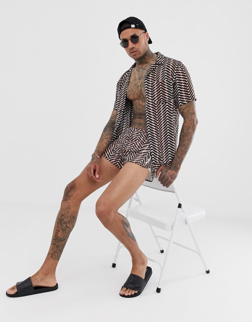 Religion geo print two-piece in orange and black