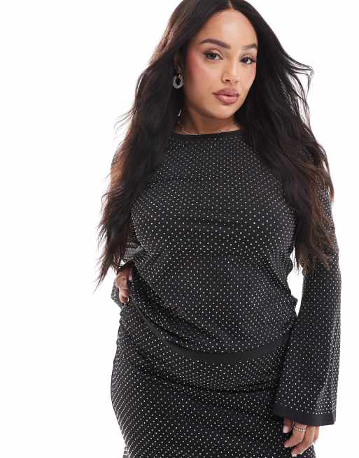 Renee Studio Plus x Michelle Nayla exclusive all over hotfix flared sleeve top in black - part of a set