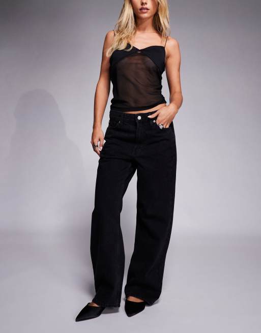 River Island Petite relaxed straight jeans in black