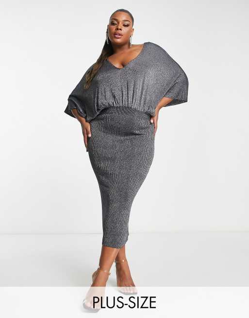 River Island Plus batwing bodycon midi dress in gray