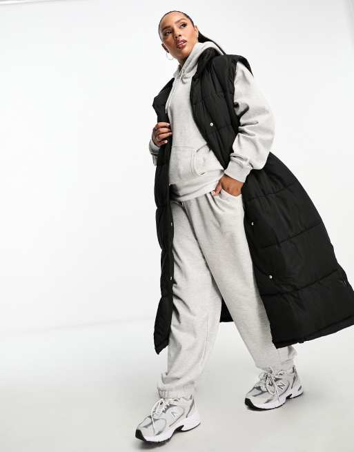 River Island Plus longline padded vest in black