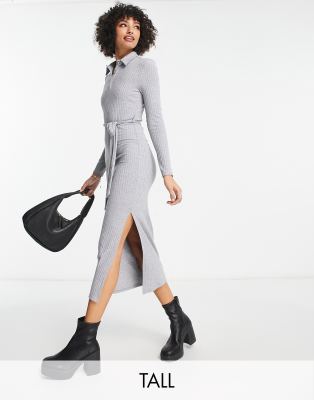 River Island Tall button up ribbed midi dress in gray