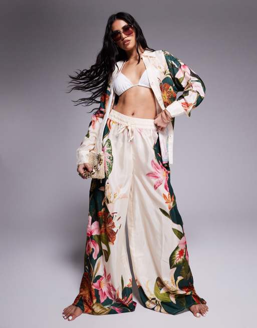 River Island botanical print wide leg pants in cream - part of a set