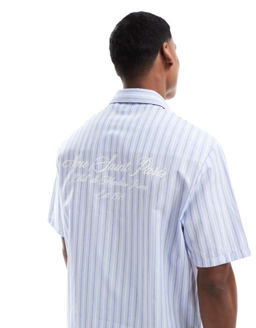 River Island boxy fit short sleeve shirt in blue stripe