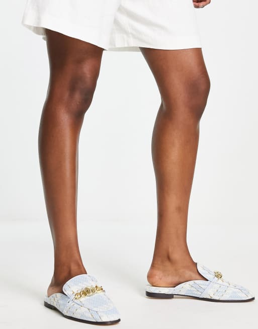 River Island chain detail boucle backless mules in light blue