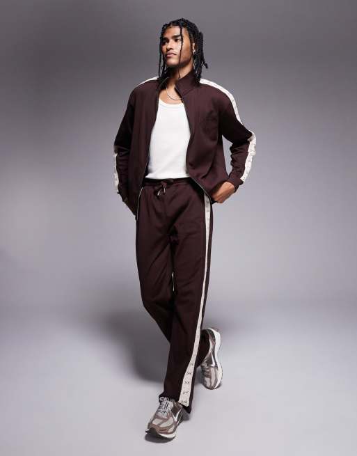 River Island crochet taped wide leg sweatpants in brown - part of a set