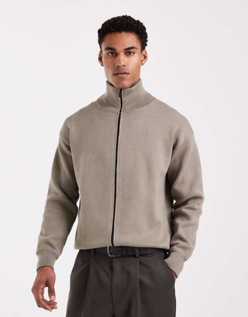 River Island essential zip up sweatshirt in light khaki