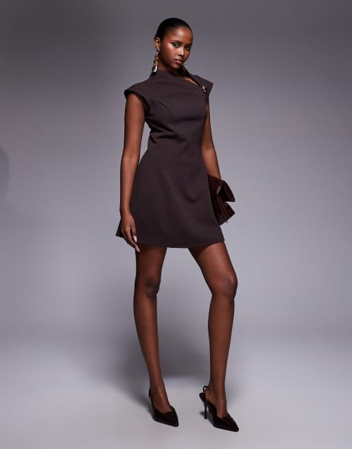 River Island gold tone detail draped mini dress in brown