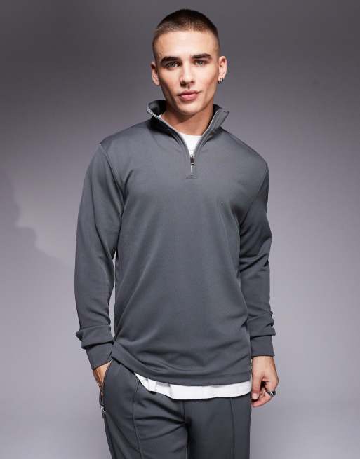 River Island half zip smart sweatshirt in gray - part of a set