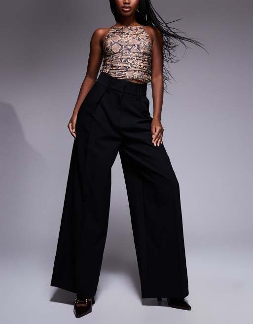 River Island high rise wide leg pants in black