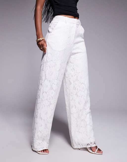 River Island lace tailored pants in white