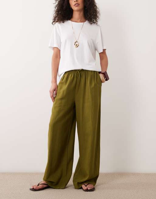 River Island linen blend wide leg pants in khaki