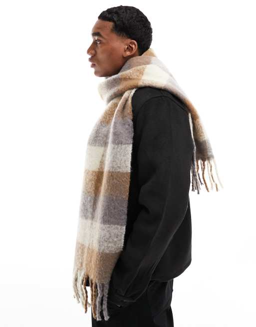 River Island oversized check scarf in beige