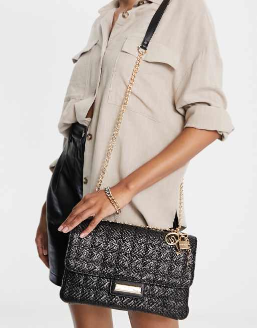 River Island raffia quilt shoulder bag in black