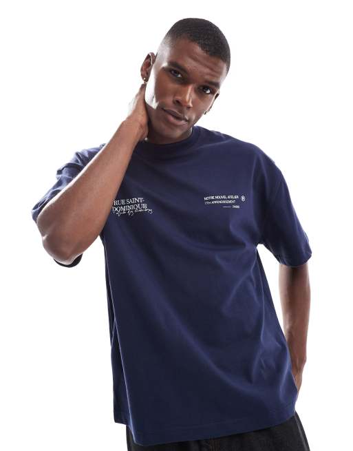River Island Rue Saint-Dominique oversized T-shirt in navy