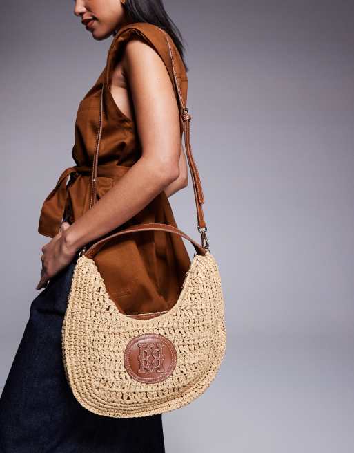 River Island scooped raffia shoulder bag in beige