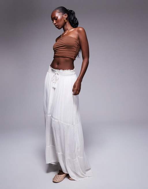 River Island shirred metallic maxi skirt in cream