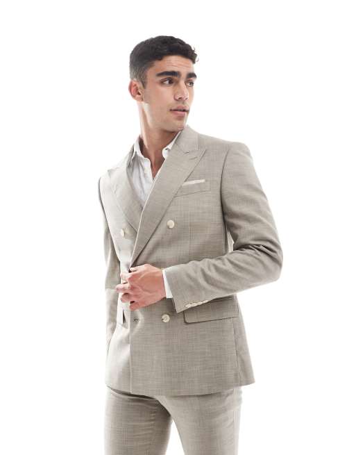 River Island slim linen mix suit jacket in cream