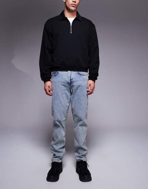 River Island tapered fit jeans in light wash blue