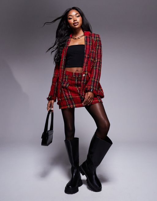 River Island tartan boucle mini skirt co-ord in red