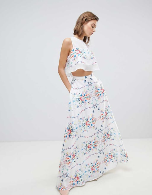 Sabina Musayev Abstract Floral Panel Blouse & Maxi Skirt Two-Piece