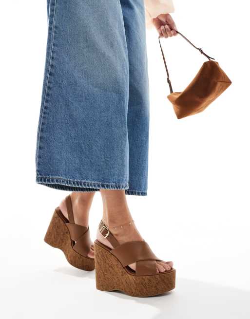 schuh Valentina cross strap cork wedge heel sandals in tan