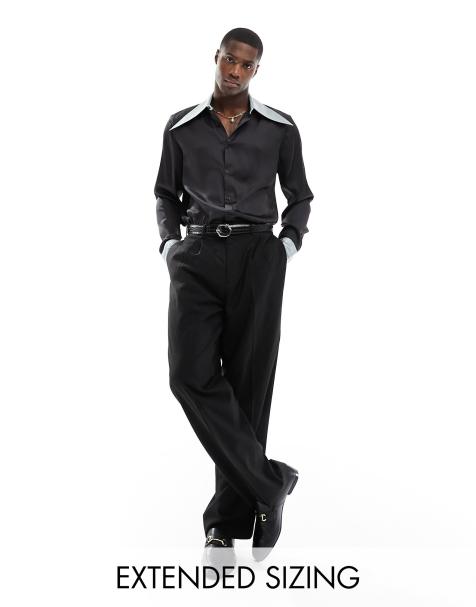 ASOS DESIGN satin shirt with revere collar in black