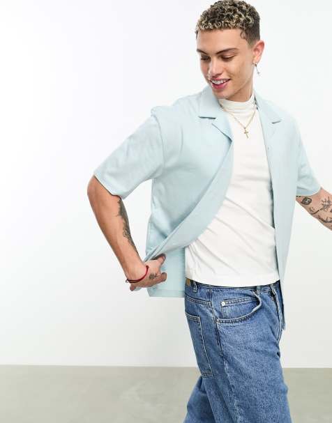 Jack & Jones Originals revere collar shirt textured shirt in pale blue - part of a set